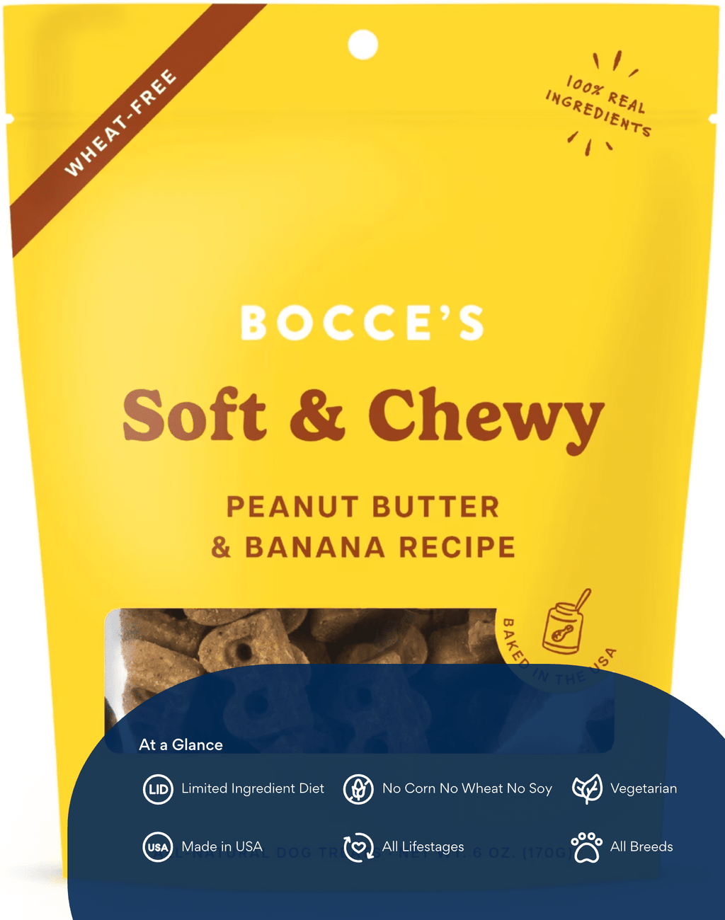 Upgrade treat time by rewarding your canine companion with Bocce’s Bakery Soft & Chewy Peanut Butter & Banana Recipe Dog Treats. These limited-ingredient goodies are oven-baked in the USA with real, recognizable ingredients and their soft, chewy texture is paw-fect for older dogs or pups who train a lot. They are 100% free of wheat and are only crafted with nine ingredients including real peanut butter and banana! Now you and your paw-tner can focus on the simple goodness of these rewards without worrying about nonsense fillers or by-product meals!