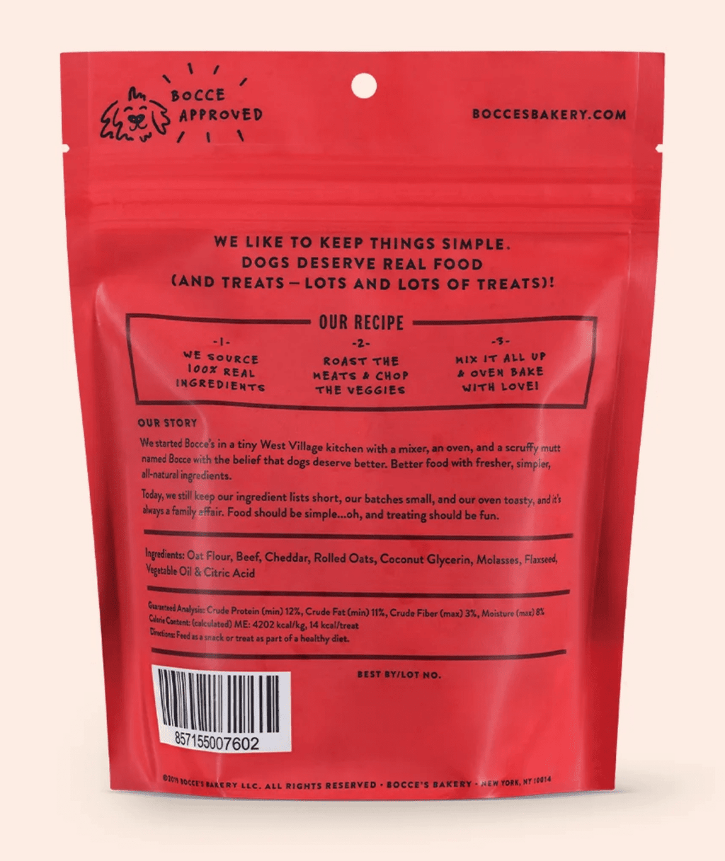 About Bocce' Bakery: We started Bocce’s in a tiny West Village kitchen with a mixer, an oven, and a scruffy mutt named Bocce with the belief that dogs deserve better. Better food with fresher, simpler, all-natural ingredients.