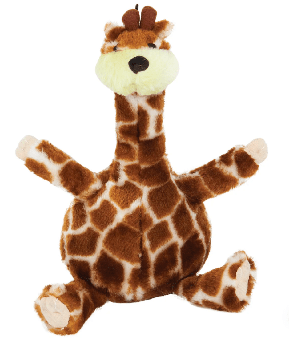 Booda® Bellies Giraffe Dog Toy is an irresistible plush toy that your dog will love to carry, cuddle, and chew! Soft to bite, but tough and durable. Fun-loving Giraffe features a big, squeezable belly that makes a loud grunting sound that will give your dog a big bonus during play!