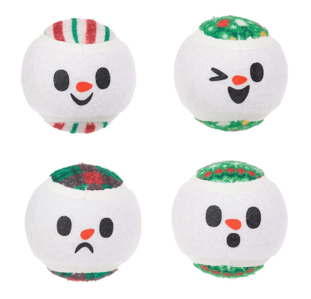 BARK Snowballers Holiday Squeaky Tennis Balls Dog Toy 4 Pack