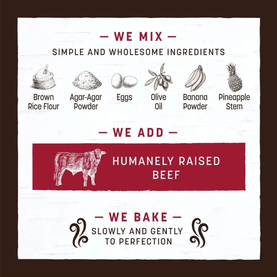 • These treats are made in the USA with simple and wholesome ingredients, including humanely raised beef.
