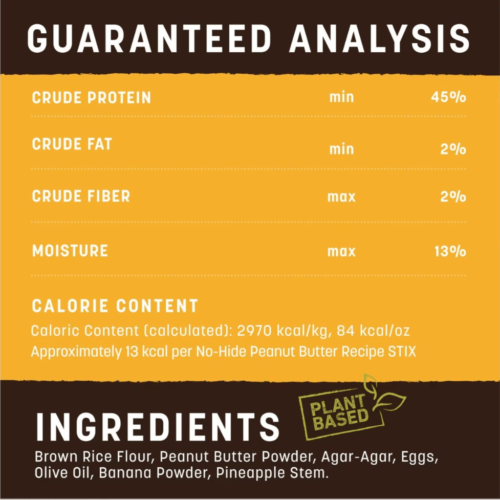 You asked for peanut butter. You got it! At last, a low-fat, low-cal, and vegetarian No-Hide option for our 4-legged friends. This sweet flavor to savor will deliver a healthy, long-lasting chew-able bliss for dogs (and cats) of all shapes and sizes. We call it No-Hide Nirvana.