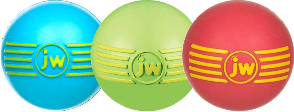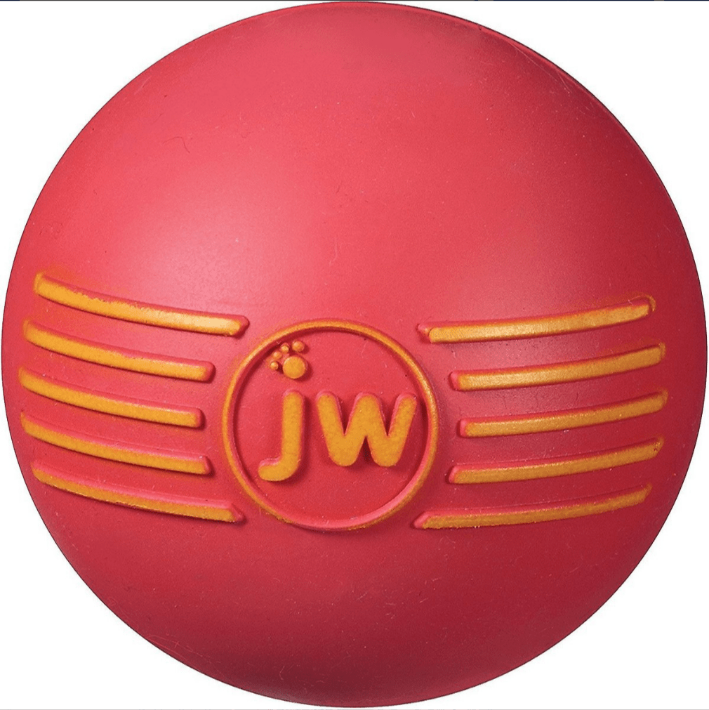 JW Pet iSqueak Rubber Ball is made of thick-walled heavy duty rubber and finished with a long-winded squeaker.