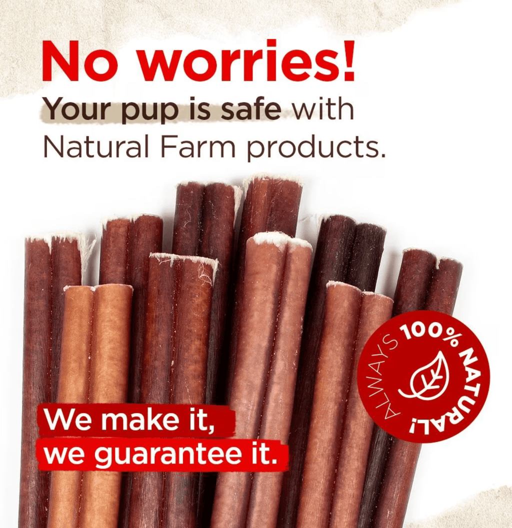 Give your furry friend a natural and delicious treat with Natural Farm Beef 12 inch Bully Sticks Dog Treats. These bully sticks are carefully sourced from a single supplier to provide the consistent high quality pet parents love. The long-lasting treats provide mental stimulation and promote positive chewing habits. They also help stimulate jaw muscles and remove plaque buildup for cleaner teeth and fresher breath. Use these bully sticks for behavior training, positive rewards, or keeping your dog calm and focused while at home or on the go. Best of all, these sticks feature no offensive odors, so you won’t mind sticking around while your pup gnaws to his heart’s content.