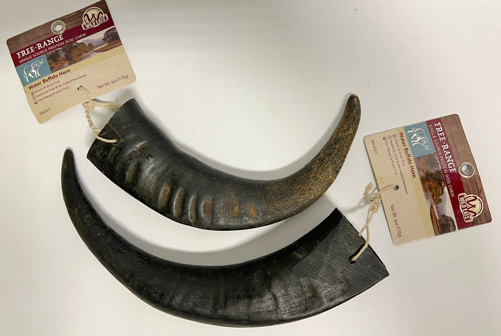 Wild Eats Water Buffalo Horn Dog Chews are 100% natural water buffalo. The free-range, grass-fed Water Buffalo provides the purest quality dog chew that is great for tough chewers. Fill with peanut butter for a special treat!