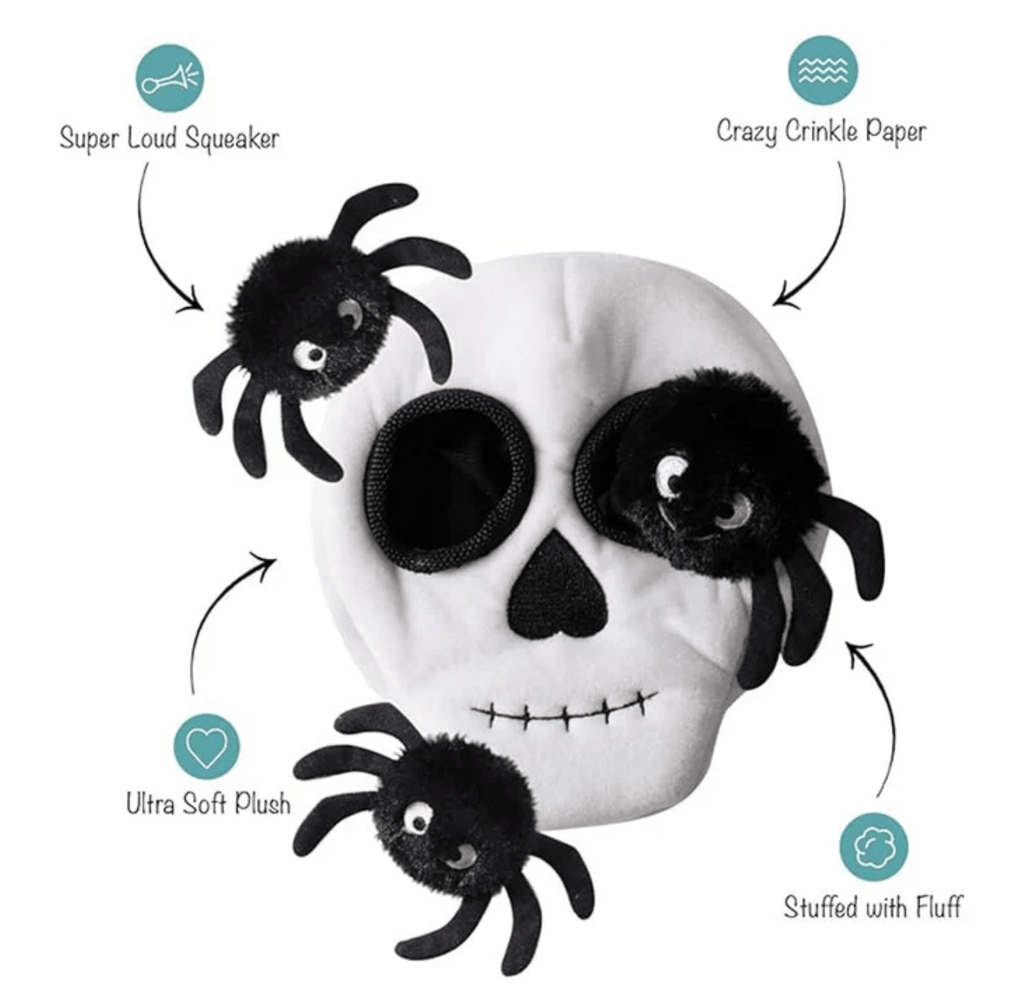 Is your head spinning? PetShop by Fringe Studio “Skull With Spiders” burrow toy set is made for pups with lots of energy that enjoy interactive puzzle toys. This burrow toy set includes 3 mini toys each with a with a loud squeaker and stuffed with fluff. Simply hide the mini toys inside the burrow structure, squeak the mini toy and watch your dog try to figure out how to pull them out. They’ll really loose their head for this brain teaser.