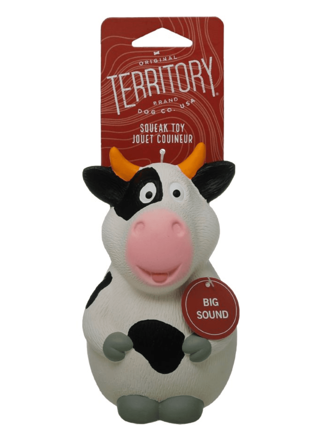 Give your pup lots of squeaky fun with Territory's Cow Latex Squeaker Dog Toy! This dog toy is made with durable latex for long-lasting interactive play. In addition, we've also added a squeaker for exciting search-and-find fun. Great for fetching fun and other supervised play, your pup will jump for udder joy with this toy!