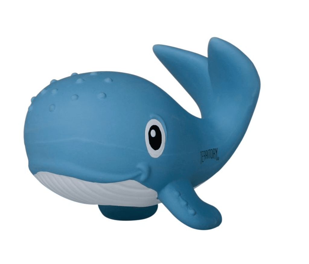 Let your pup find fun in the sea with Territory's Natural Rubber Whale Squeaker Dog Toy!