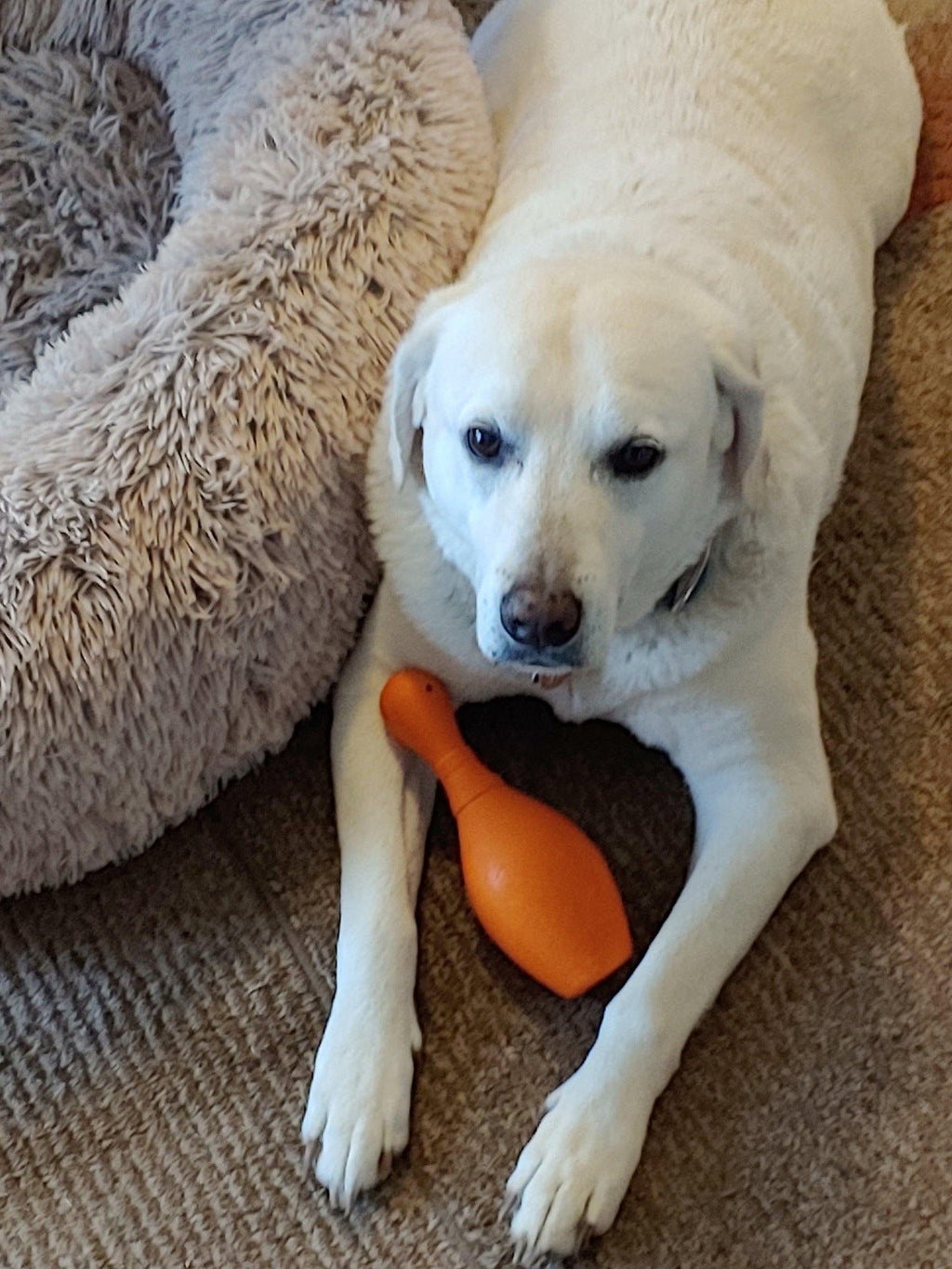 The squeaker will give your dog endless enjoyment and stands up to even the toughest chewers. Your dog will love this bowling pin's ability to stand up to rugged playtime, perfect for squeaking, flinging, rolling, and just carrying around.