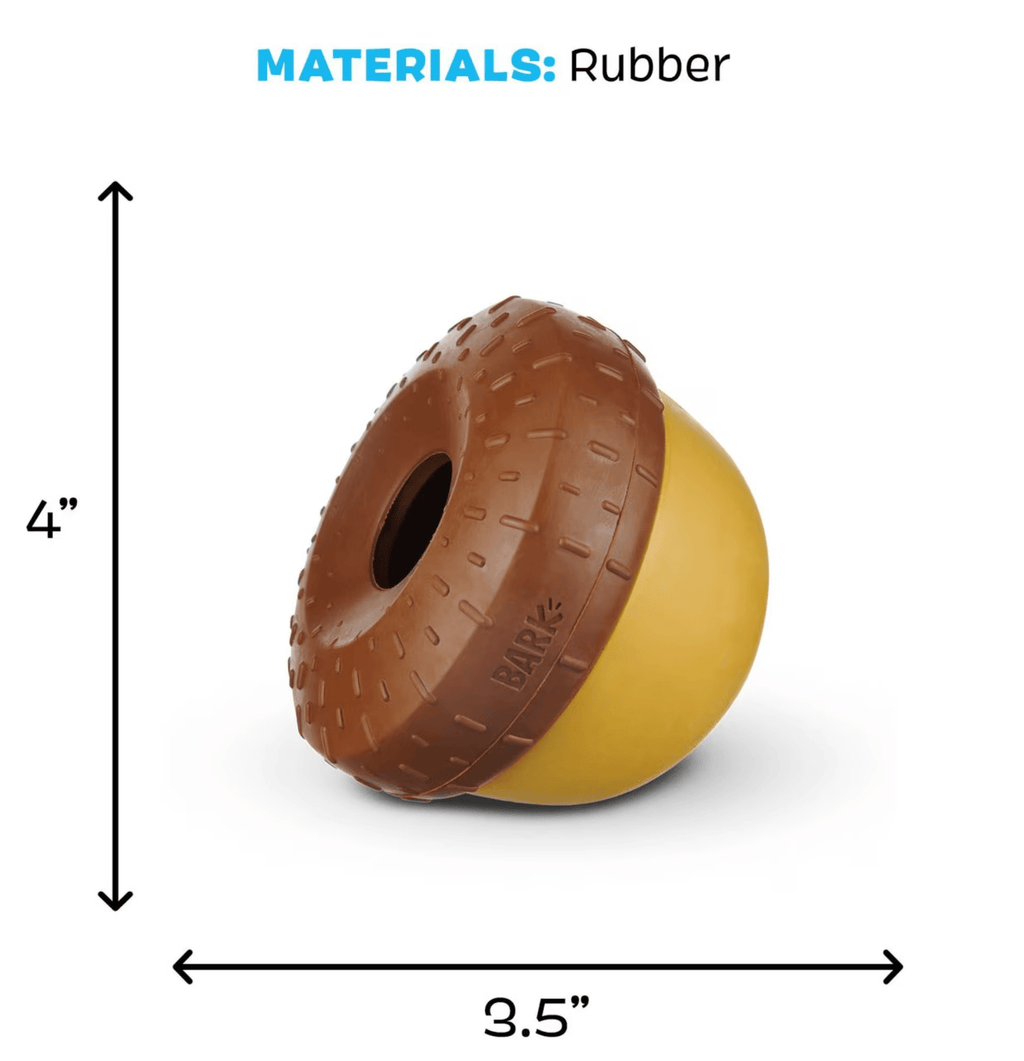 This acorn dog toy is perfect for pups who like to squirrel away their treat treasures. Acornucopia is made with peanut-scented natural rubber with a gnaw-friendly texture for satisfying chew sessions. You wanna get really nuts? Add some snacks to this wacky-wobble treat dispensing acorn, and watch your dog go nuts!