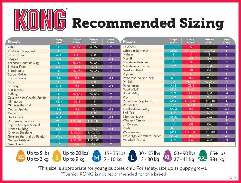 The KONG Extreme dog toy represents the most durable strength of KONG rubber. Designed for the toughest of chewers, the KONG Extreme offers enrichment and helps satisfy dogs’ instinctual needs. The KONG unique, ultra-durable, all-natural rubber formula is designed for determined chewers, while the erratic bounce fulfills a dog’s need to play. Want to extend play time? Be sure to stuff with tempting bits of kibble and entice with a dash of peanut butter. Stuff and freeze for a longer-lasting challenge.