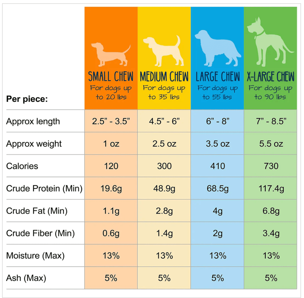 Extra Large size is 7"-8.5" long and weighs 5.5 oz. Perfect for dogs up to 90 lbs.