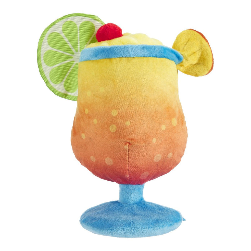 This Mai Tai dog toy comes with its own chaser - your pup! Our bark tenders filled Mai Tail to the brim with fluff and two different squeakers, blended to perfection. Plus, the whip-n-flip garnish lets dogs unwind after a long day of lying on the couch. Enjoy a tropical yappy hour, and please squeak responsibly.