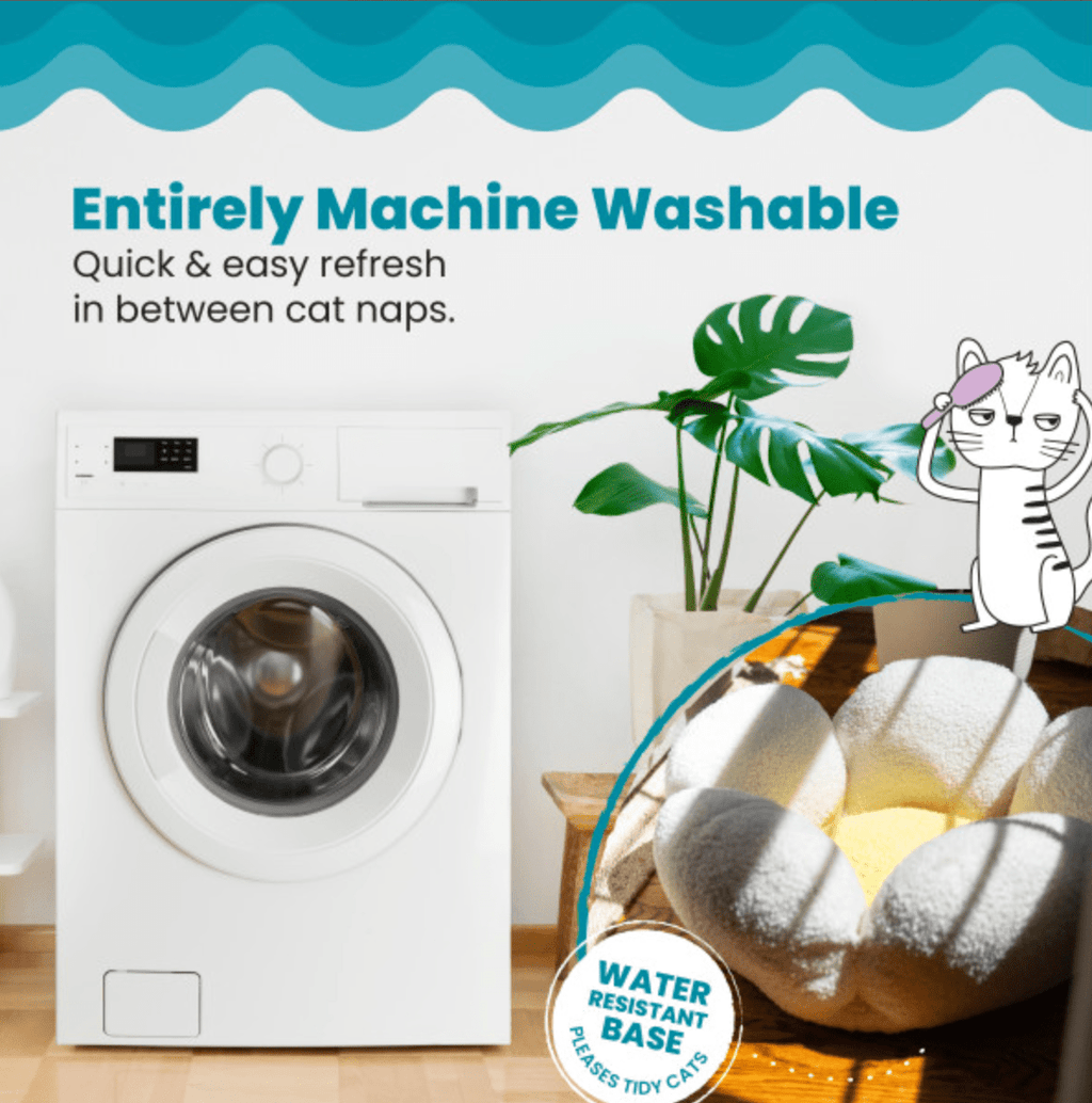 - Entirely machine washable with a water-resistant bottom to please tidy cats and their doting humans.